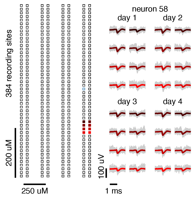 We use Neuropixels probes to measure activity in 100s of neurons across multiple brain areas.